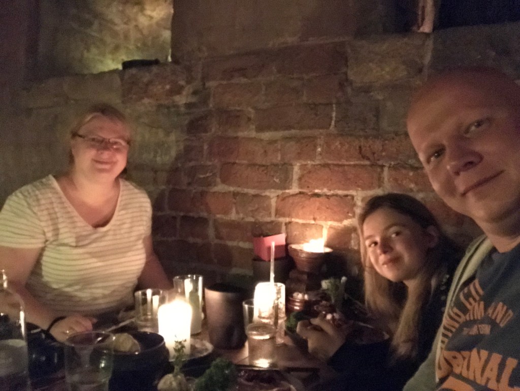 Wir waren in einem mittelalterlichen Restaurant. Es hat geschmeckt, obwohl man teilweise nichts erkannt hat.