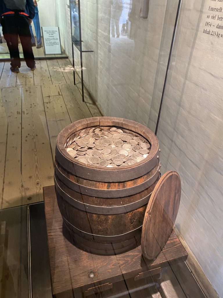 Eine Schatzkammer gab es natürlich auch. Die Taler wurden in kleinen Fässern transportiert und gelagert. In ein Fass passten 10.000 Taler.