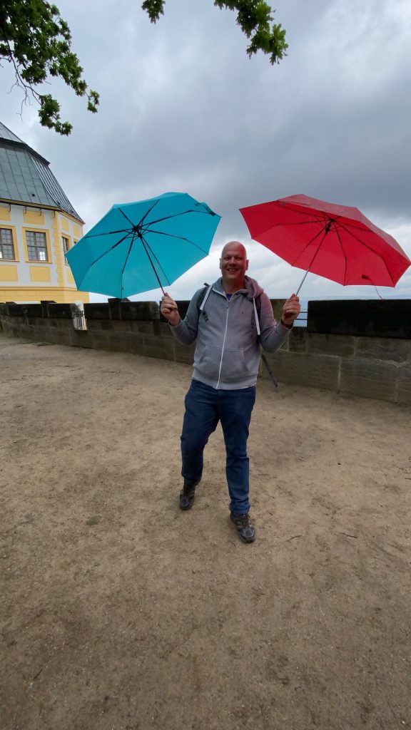 Das Wetter war ja leider nicht so schön. 🌧aber nachdem uns Denny einen Regenschirm ☂️abgegeben hat, konnten wir an der Festungsmauer lang laufen.