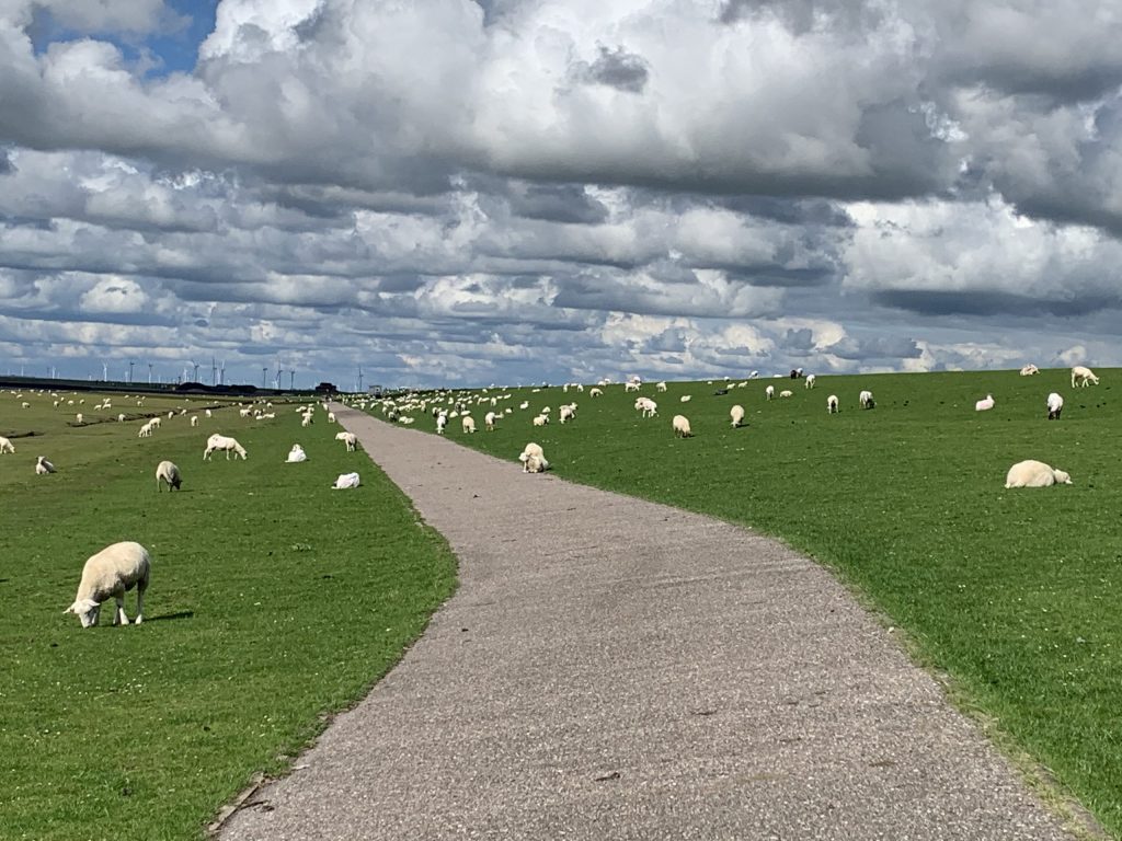 Die Schafe sind hier so vertraut mit Spaziergängern und Radfahrern, die bleiben einfach liegen.