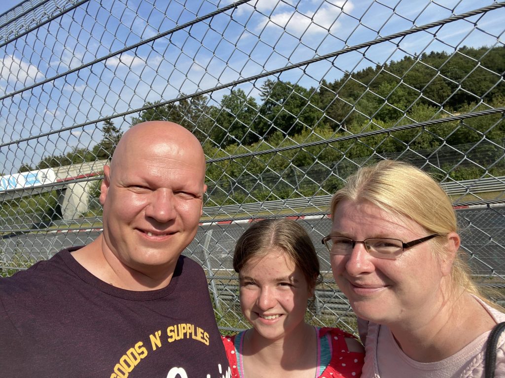 Dann ging es zum Nürburgring. Aber nur zum gucken. Man konnte zwar mit seinem Auto die Strecke fahren, wir haben aber lieber zugeschaut. Dort trafen wir einen jungen Mann, der mit Freunden unterwegs war. Sie machen Urlaub mit und in ihren Trabis. 2018 sind sie von der Simson auf Trabi umgestiegen und sind dann gleich die Go Trabi Go Strecke abgefahren. Und heute sind sie auf dem Nürburgring gefahren. War echt witzig.