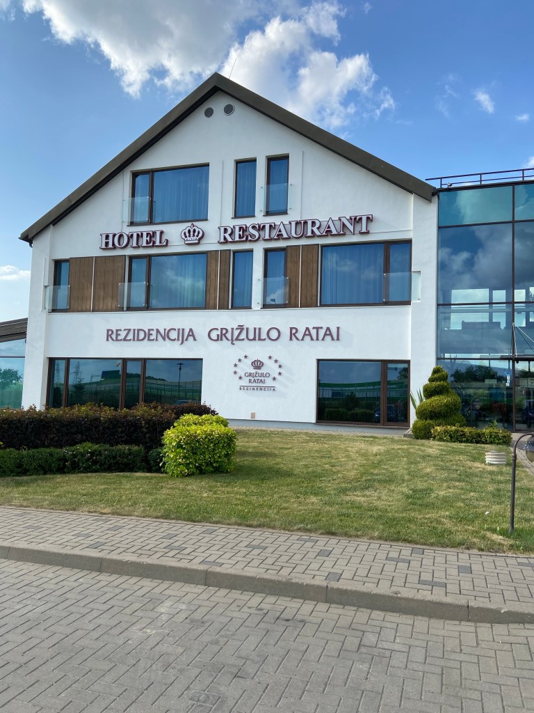 Nach neun Stunden Autofahrt sind wir dann in Litauen angekommen. Bisher haben wir 1400 km zurückgelegt. Unsere Unterkunft liegt direkt an der Schnellstraße. Es ist aber sehr ruhig und die Anlage sehr schön.