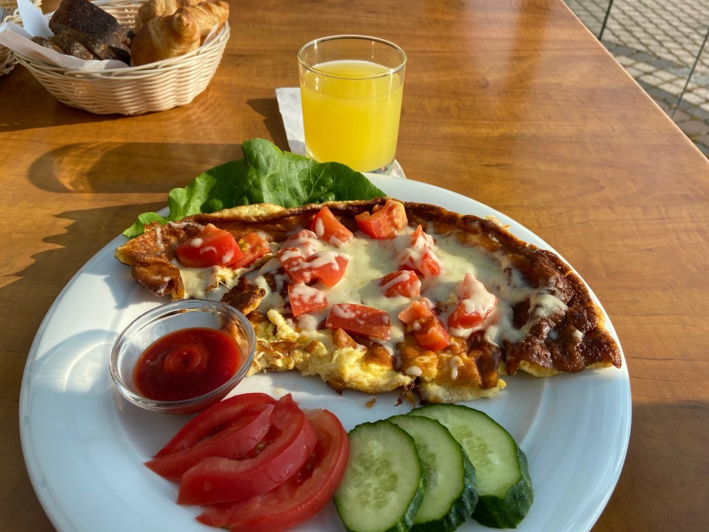 Frühstück gab es in Litauen. Hier gab es kein klassisches Frühstück oder Buffet, aber es war lecker.