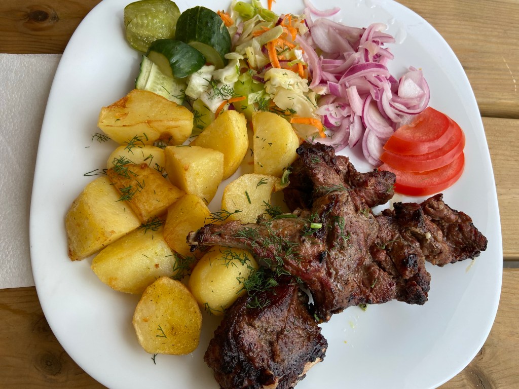 Gestärkt ging es dann weiter Richtung Lettland. Hier haben wir uns von unterwegs registriert, da wir für den Transit nur 12 Stunden hatten. Denn in Lettland dürfen Ungeimpfte derzeit noch keinen Urlaub machen. Mittagessen gab es dann aber in Lettland. Da lange Zeit auf der Strecke nichts kam, nahmen wir das Nächste. Von außen sah es „Naja“ aus. Das Essen war aber klasse. Die Bedienung konnte kein Wort englisch, daher ging die Bestellung mit Händen und Füßen.