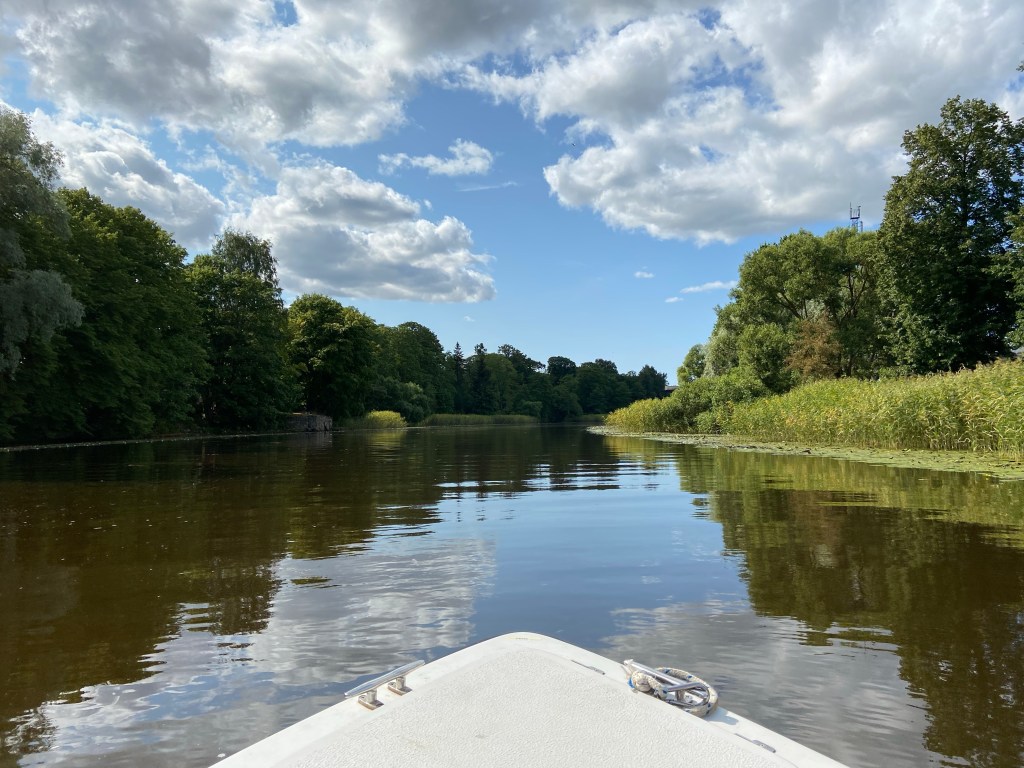 Um zwei Uhr fuhren wir dann zu einem Bootsverleih, wo wir von einem netten Mann namens Jacob eingewiesen wurden. Jacob hat sich riesig gefreut, dass wir aus Deutschland kommen. Letztes Jahr waren nur Einheimische oder Finnen dort. Er erklärte uns, wo wir lang fahren dürfen und wie wir uns verhalten sollten. Und dann ging’s los.