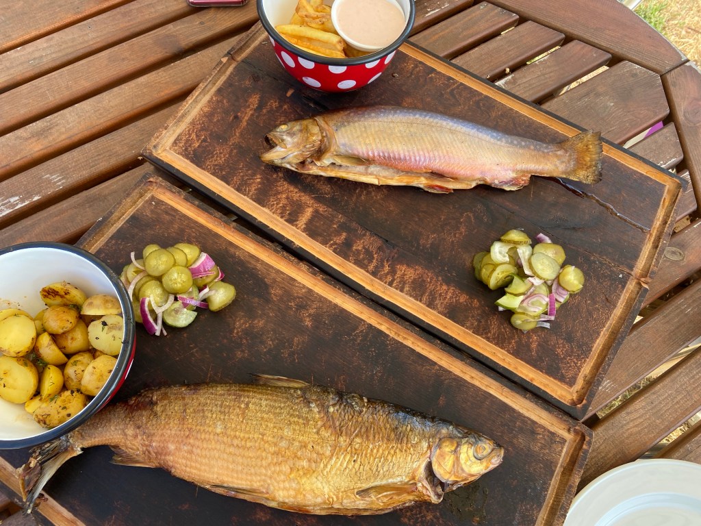 Nach der zwei Stündigen Tour gab es bei dieser netten Familie vom Bootsverleih noch eine Kleinigkeit zu Essen: geräucherten Fisch