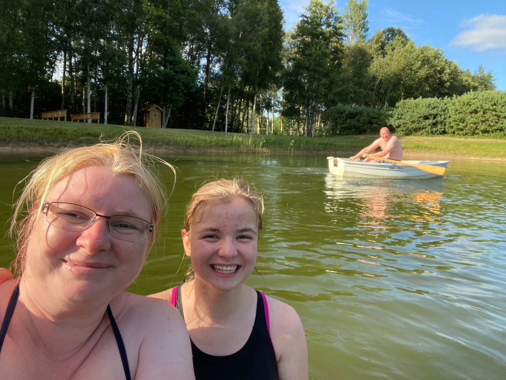 Zur späteren Stunde wollte Denny gucken, ob auch Fische im Teich sind. Es dauerte zwei Minuten….