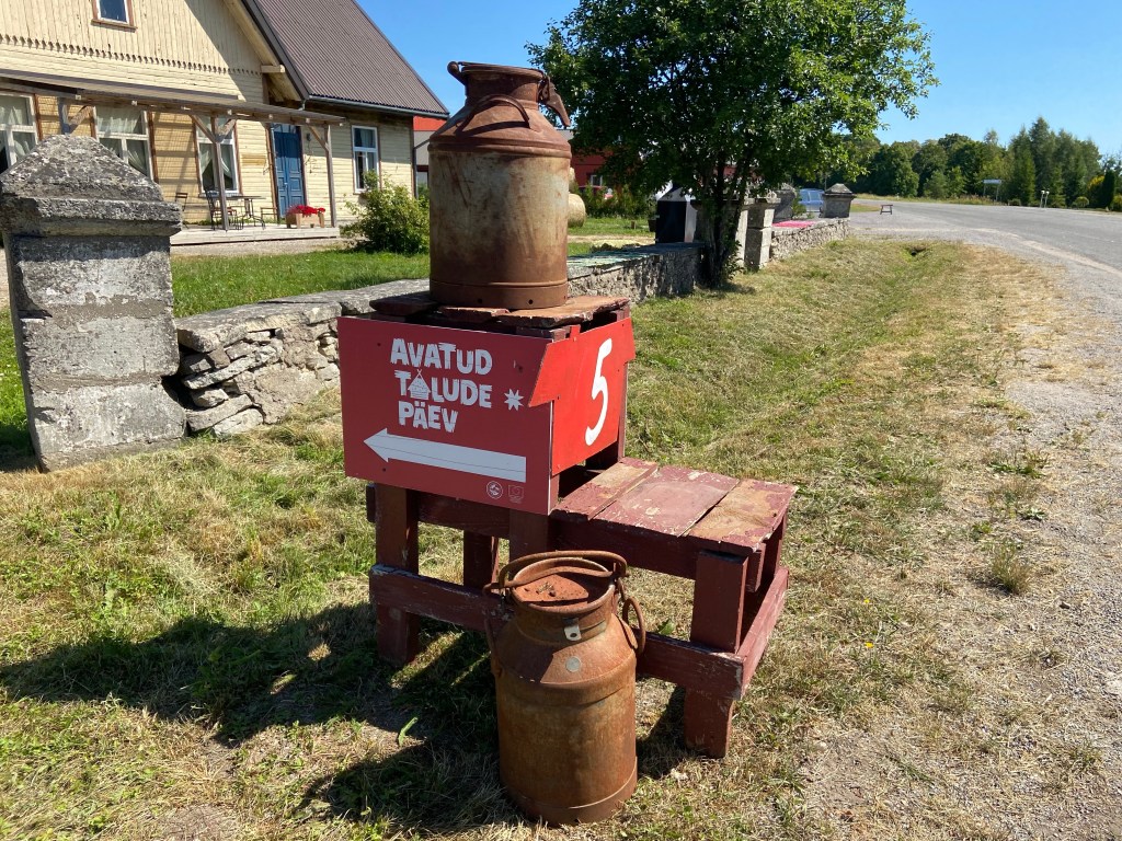 Heute war auf Saaremaa der „ Tag der offenen Farmen“. Das heißt man kann zu den Leuten aufs Grundstück und sich ihre Tiere und Maschinen anschauen. Insgesamt haben 30 Familien von der Insel mitgemacht, diese konnte man auf einer Karte sehen.
