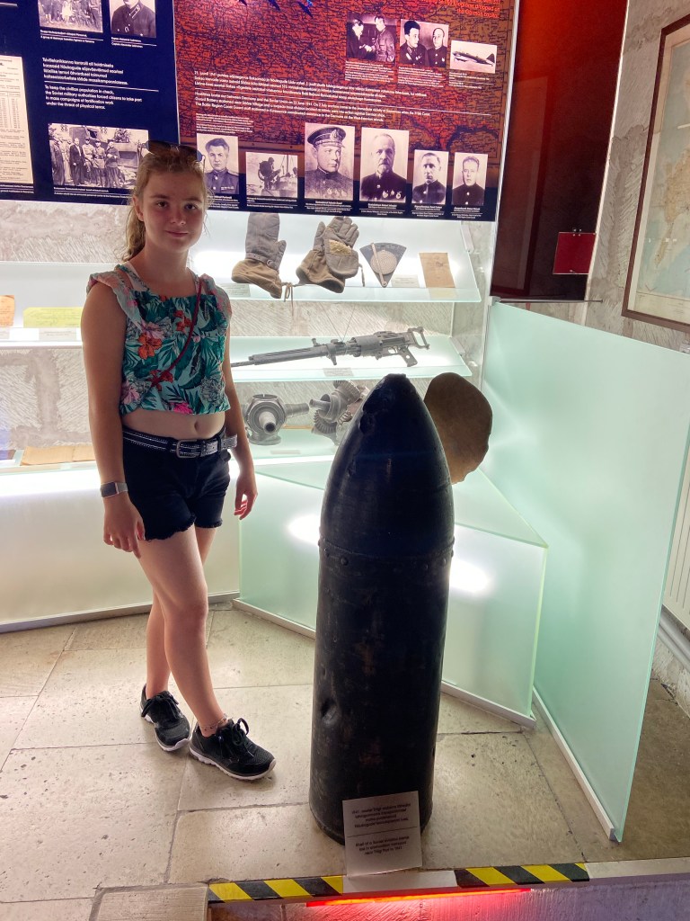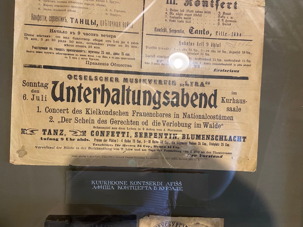 Das nächste Ziel war kein Hof mehr sondern die Festung und Burg Kuressaare . Es gab u.a. eine geschichtliche Abteilung, eine Naturabteilung, eine Archeologische Abteilung. Es war zwar alles in englisch beschrieben , aber alles haben wir dann auch nicht verstanden. Aus Zeiten des Krieges gab es ein paar deutsche Schriftstücke und in der Kapelle hing ein Altar mit deutscher Inschrift.