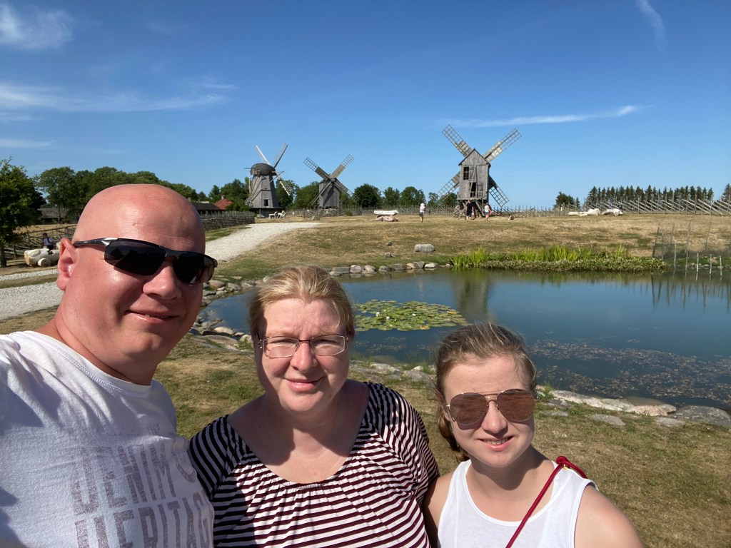 Anschließend ging es zum Windmühlenpark. Hier stehen vier Bockwindmühlen und eine Holländische Mühle. Hier standen 1925 noch neun Mühlen, da der Ort etwas höher liegt und es immer viel Wind gab.