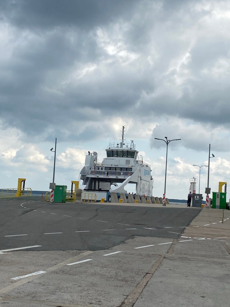 Heute durften wir als erstes auf die Fähre fahren. Das war auch gut so. Denn es passen ca 30 PKWs auf das Schiff drauf.