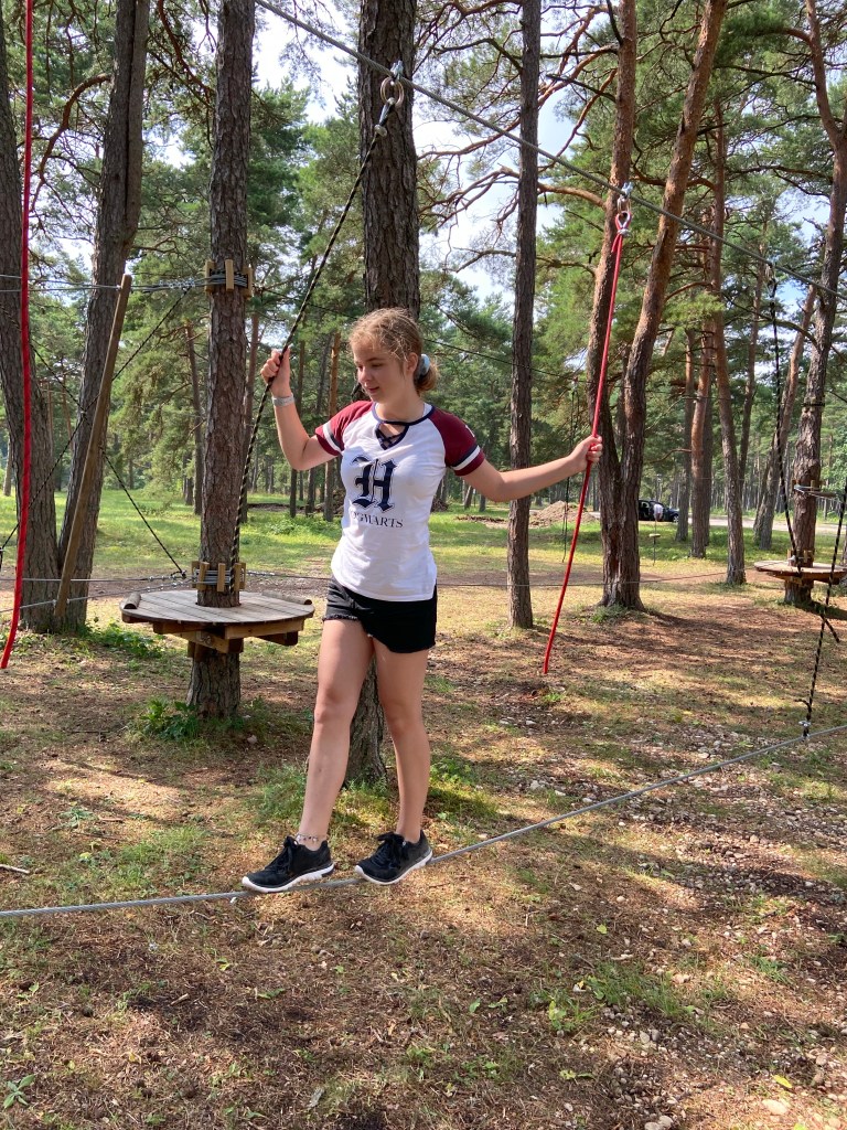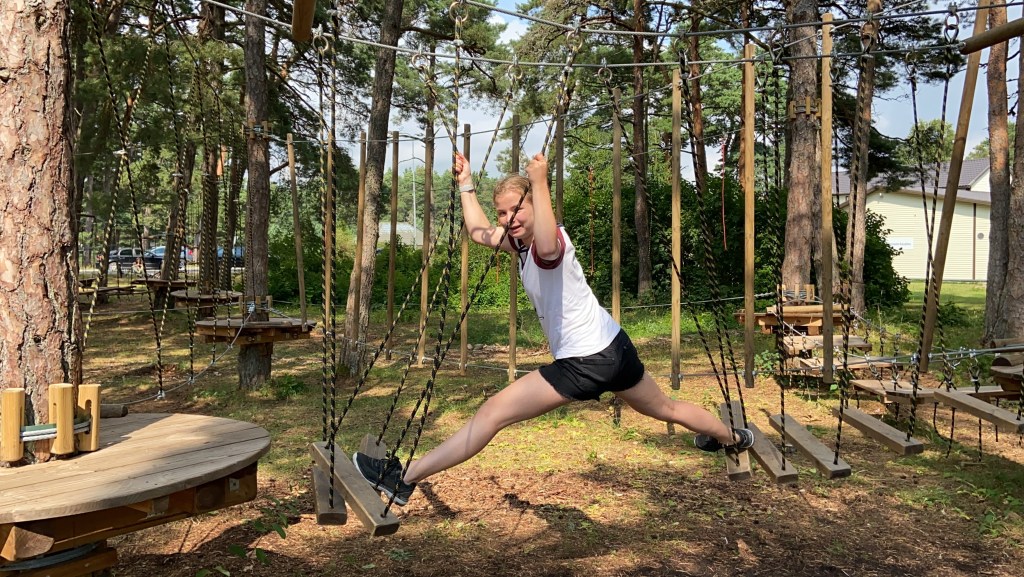 Nachdem Sara alles easy peasy gemeistert hat, ging es weiter bis zu einer Mühle mit einer Doppelschaukel in einer tollen landschaftlichen Gegend.