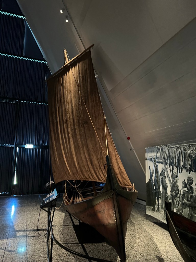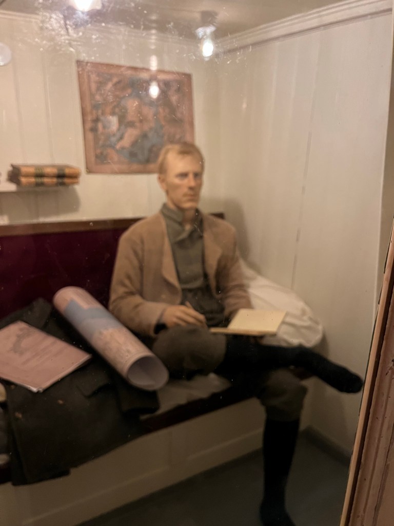 Bevor wird die Besichtigung gestartet haben, wurden wir in einen kleinen Dokufilm informiert, wie die Polarforschung in Norwegen sich entwickelt hat. Das Gute war, man hatte einen Kopfhörer und konnte seine Sprache einstellen.