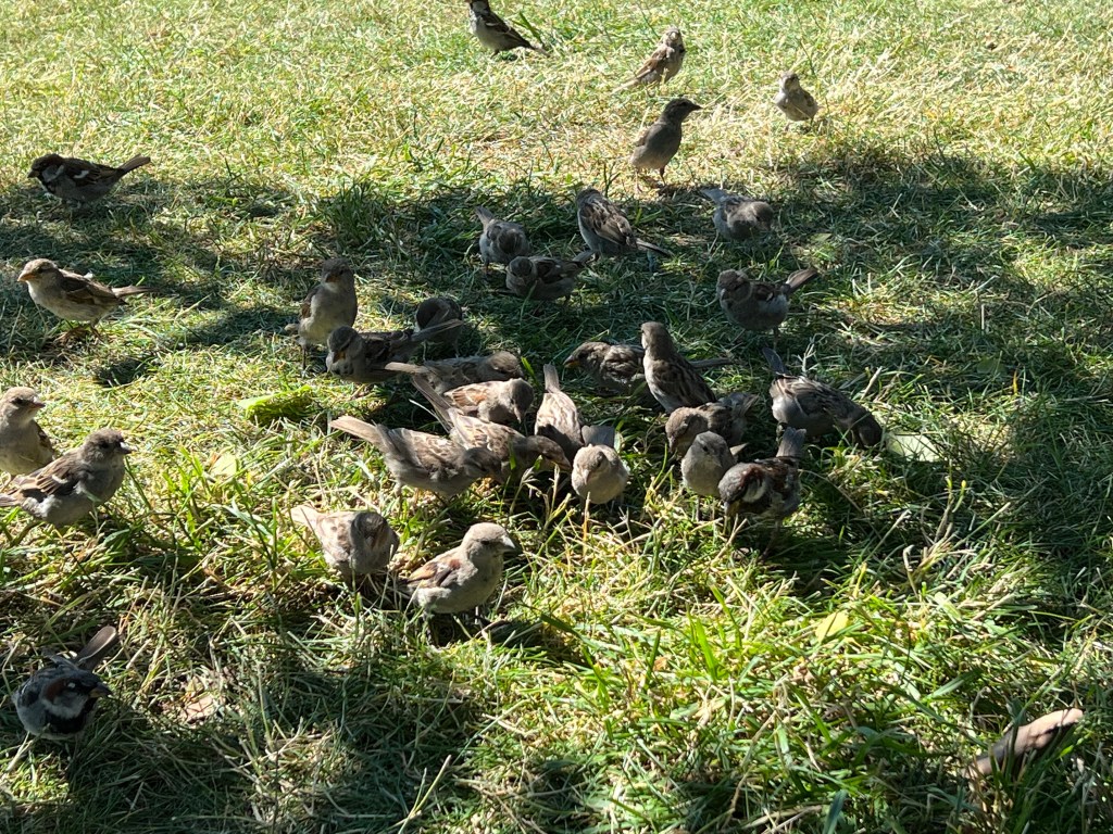 Die Spatzen haben sich über unsere Krümel riesig gefreut und es kamen immer mehr.