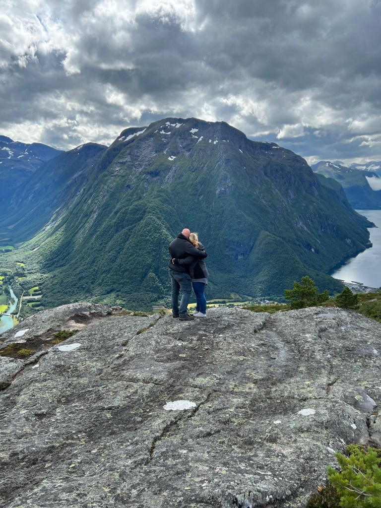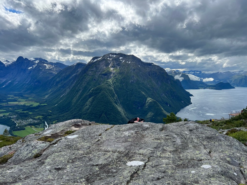Dann ging es nach Andalsnes. Hier sind wir mit der Gondel zu einer Aussichtsplattform namens Rampestreken. Hier hat man einen wunderbaren Blick auf die Berglandschaft und den Romsdalsfjord.