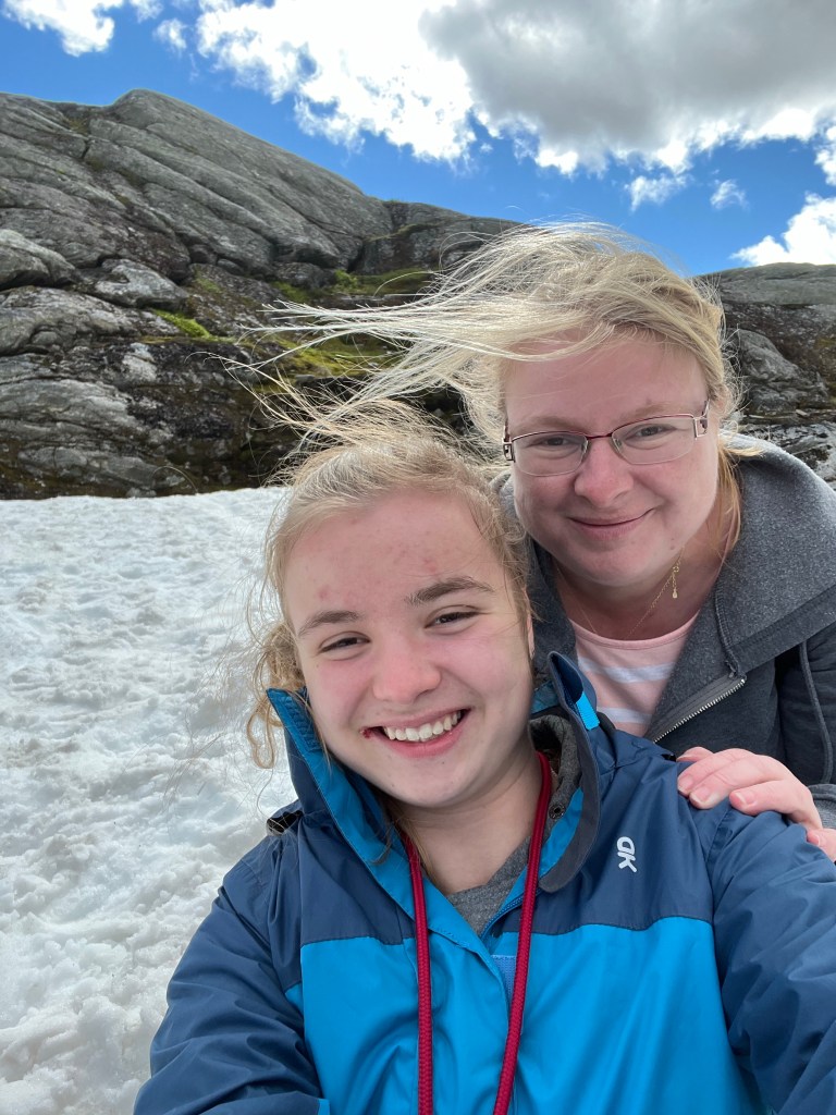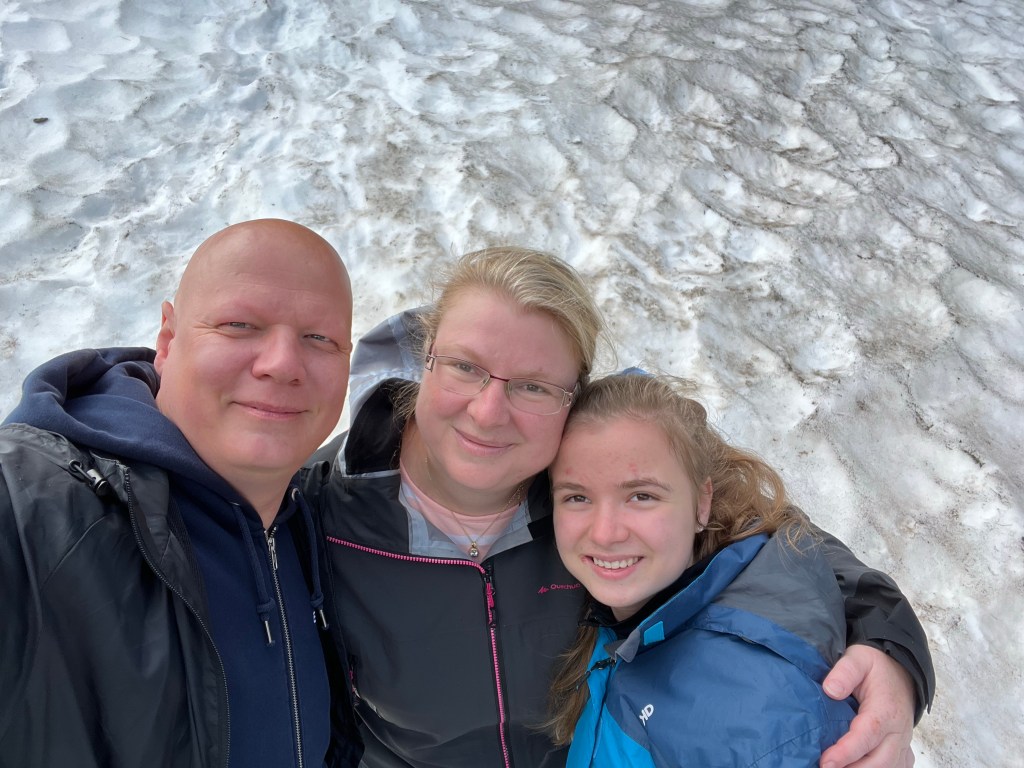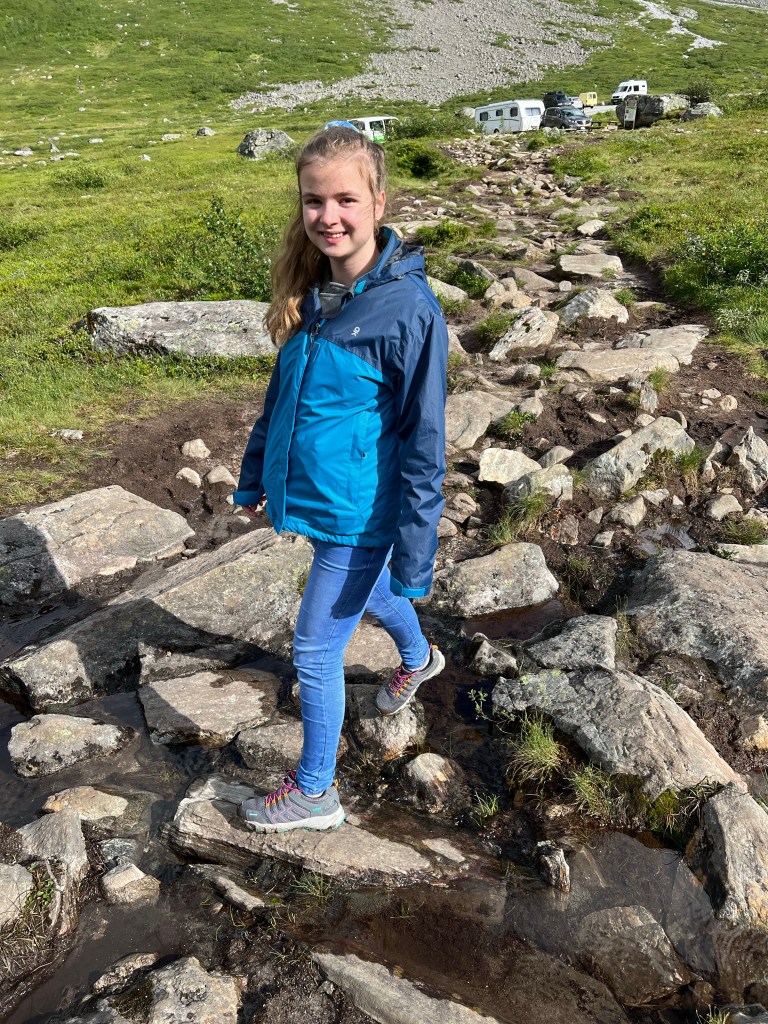 Übrigens hatte Sara hier oben drei Jacken an. Es war trotz Sonne sehr frisch. Teilweise war es Winter.