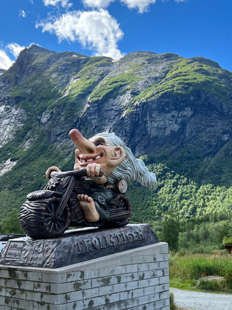 Übrigens zählt Norwegen ja zum Land der Trolle. Ab und an findet man Figuren an den Straßen. Die Souvenirläden sind voll mit den nicht so schönen Trollen.