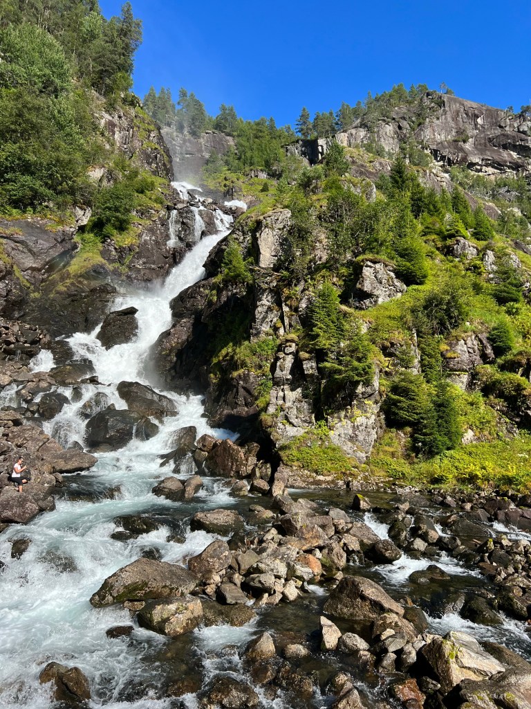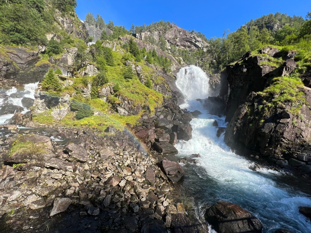 Auf der Rückfahrt haben wir noch einen kleinen Abstecher zum Zwillingswasserfall Latefossen gemacht. Er hat eine Gesamthöhe von 165 Metern.