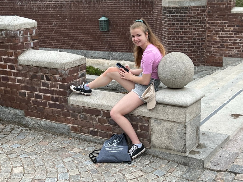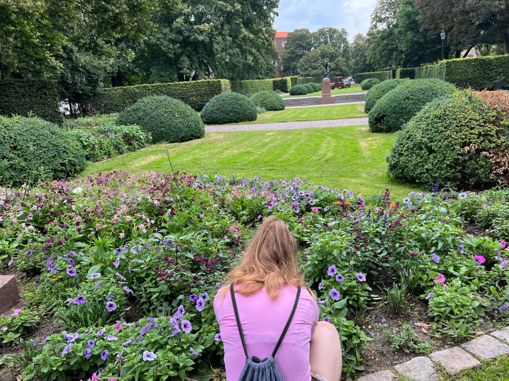 Oben angekommen befindet sich ein kleiner Ententeich ( ohne Enten), ein Blumengarten und der Burgturm „Kärnan“, was soviel bedeutet wie Kern. Der 40 Meter hohe Turm aus dem 14. Jahrhundert diente als Wachturm. (Tatsächlich hab ich kein Bild davon)