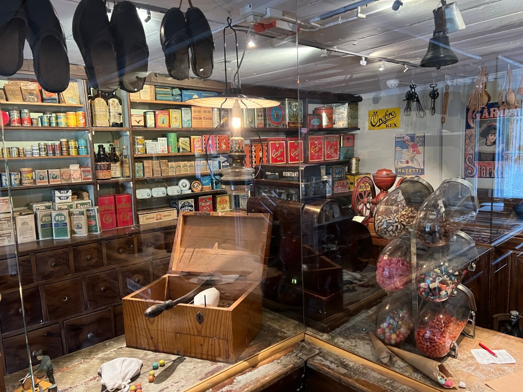 Nach 1 1/2 Stunde haben wir eine Pause in Linköping eingelegt und haben das Freilichtmuseum besichtigt. Das Museum ist etwas anders, wie die anderen Freilichtmuseen, die wir sonst anschauen. Zum einen ist es kostenlos und zum anderen ist es eine kleine Stadt in einer Stadt. Hier kann man sehen, wie man vor 100 Jahren gelebt hat. Die Gebäude stammen alle aus der Innenstadt von Linköping und wurde hierher versetzt.
