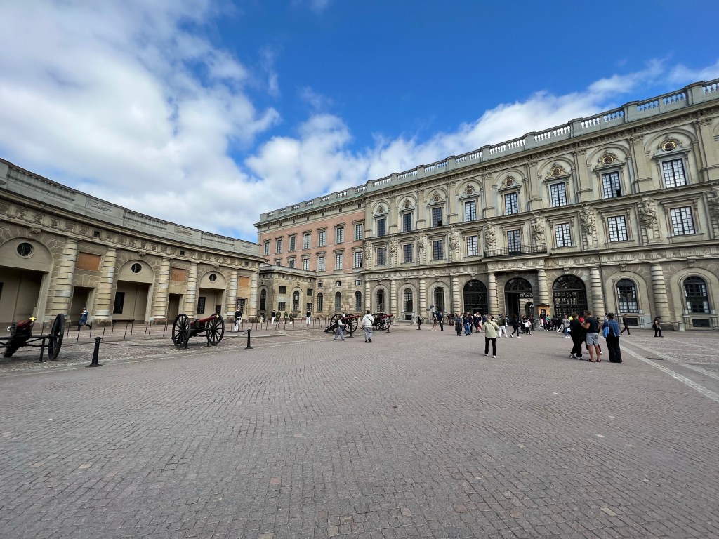 Wir hatten uns ein zentrales Parkhaus rausgesucht, so dass wir gleich im Zentrum waren. Am Stockholmer Schloss angekommen, konnten wir die Wachablösung beobachten. Die gespielte Musik war sehr lebend.