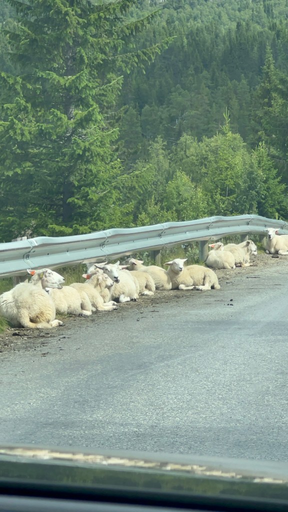 Eins hätte ich ja fast vergessen. Bei schönem Wetter kommen die Schafe wieder raus und sonnen sich am Straßenrand.