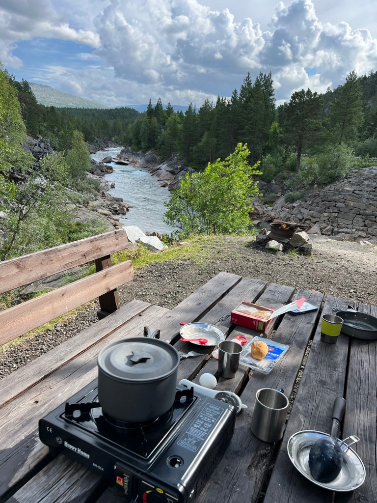 Gegen halb vier haben wir dann einen wundervollen Platz zum Mittagessen gefunden. Es gab Königsberger Klopse und Reistopf und zum Nachtisch Joghurt.