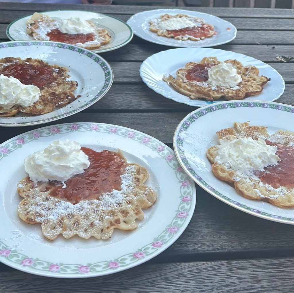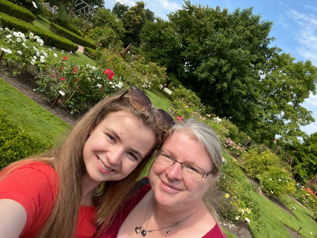 Unser Spaziergang führte uns durch den Rosengarten, wo wir auch n kleinen Mittagssnack essen wollten und zwar Waffeln.