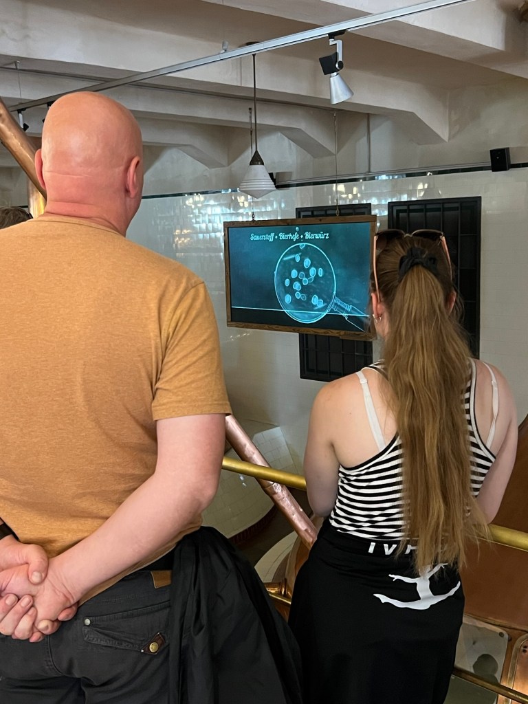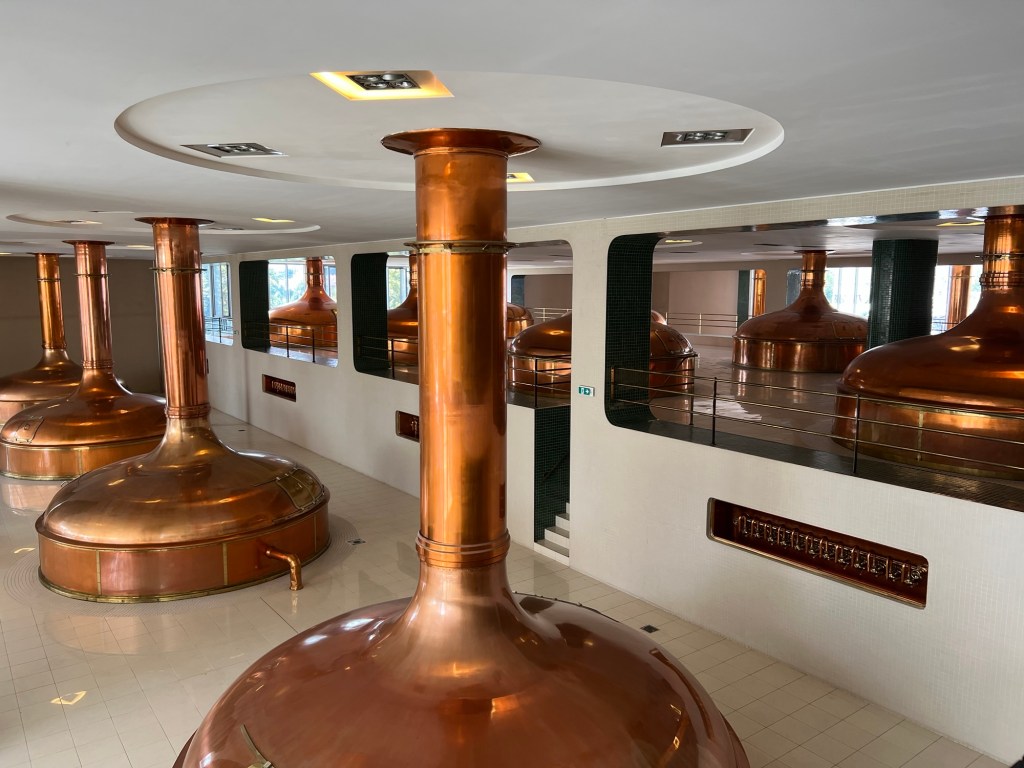 Den Brauprozess haben wir auch erklärt bekommen. Der gesamte Herstellungs- und Reifeprozess dauert 35 Tage. Ein Auszug von Pilsener Urquell erklärt einen Teil: „Zu Beginn vermengen wir unser Malz – gewonnen aus der süßlichen, zweireihigen Gerste aus Mähren – mit weichem Wasser aus Plzeň in unseren Kupfertanks. Diese Mischung nennt sich Bierwürze. Im Laufe des Brauprozesses nehmen wir einen Teil der Bierwürze aus dem Tank und kochen diesen über einer offenen Flamme dreifach ab. Das ist unser traditionelles Dreimaischverfahren. Durch dieses erhält unser Bier mehr Geschmack und seine typisch goldene Farbe.“ (pilsnerurquell.com)