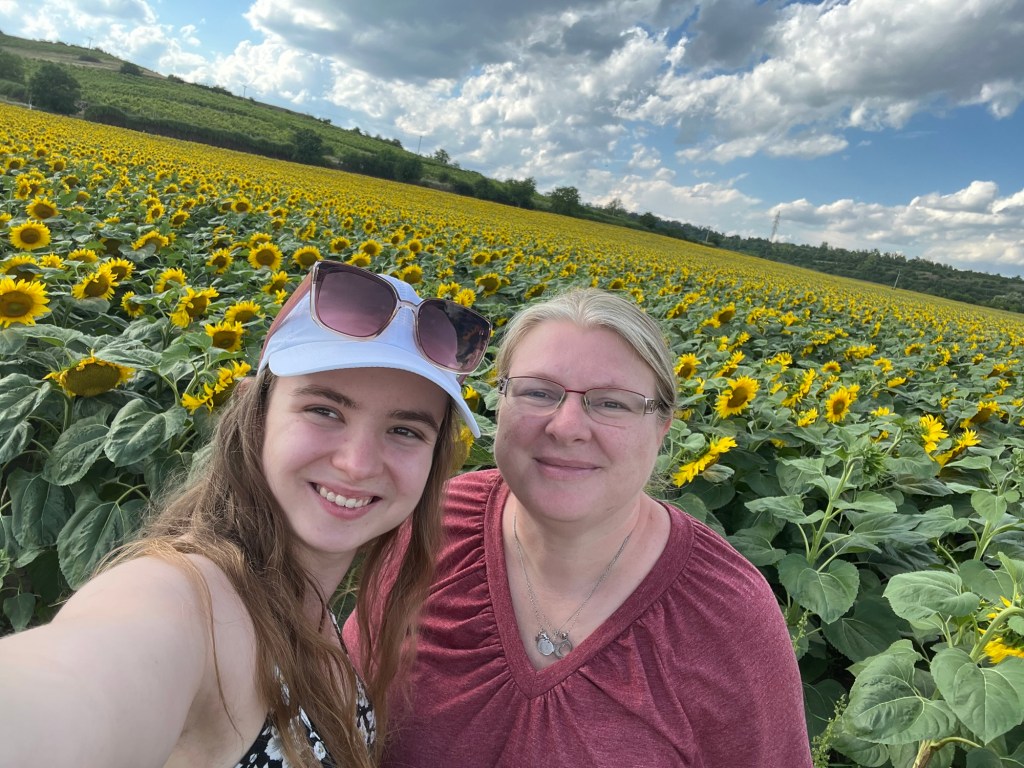 Anschließend haben wir noch die wunderschöne Natur genossen. Wir sind hier in einer Weingegend. Nur schade, dass wir kein Wein mögen. Aber die Reben sehen toll aus. Außerdem gibt es viele Sonnenblumenfelder.