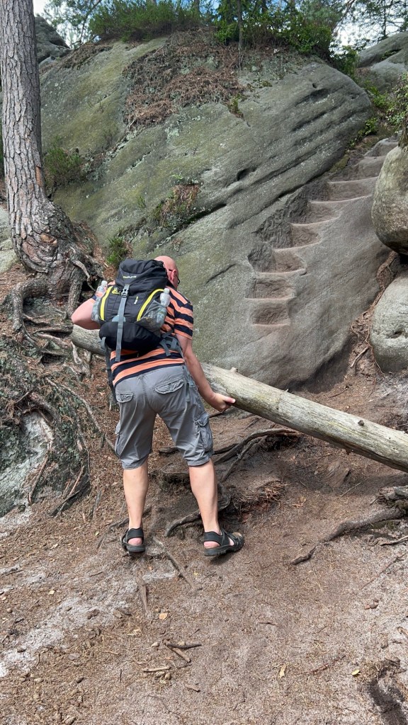 Dann ging’s weiter unser Ziel waren ja die Katzensteine und wir hatten ja endlich den richtigen Weg gefunden. Doch der hatte es in sich. Die letzten drei Tage sind wir schon viel hoch runter hoch runter gelaufen, aber das was jetzt kam, toppte alles. Ich kam an meine Grenzen und dachte zwei/ dreimal „das packst du nicht“.