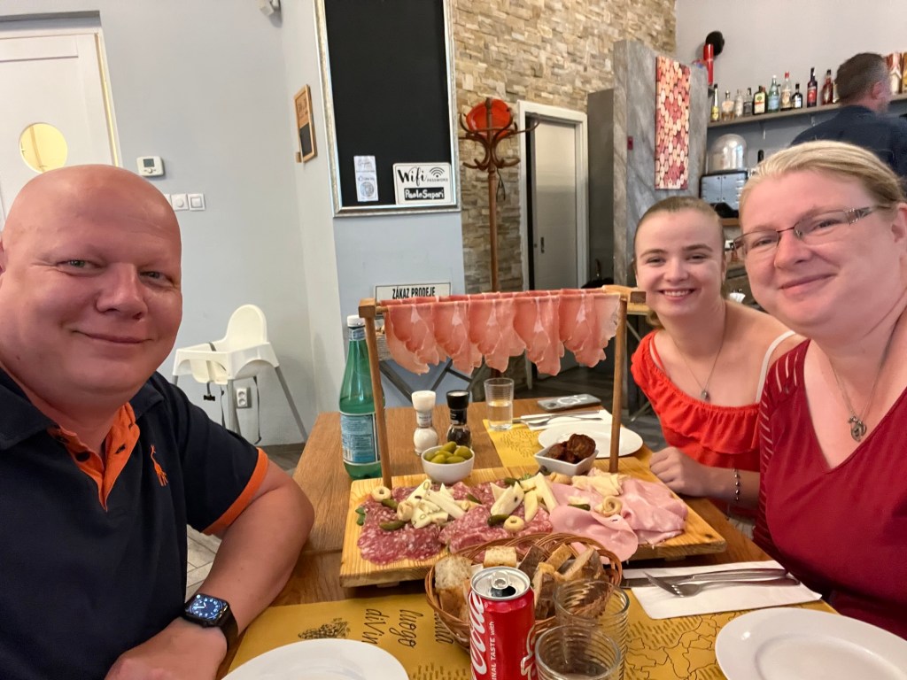Der Schinken sah lecker aus. Euch geht es lt. Fotos gut. Ihr drei seht erholt aus 😊.