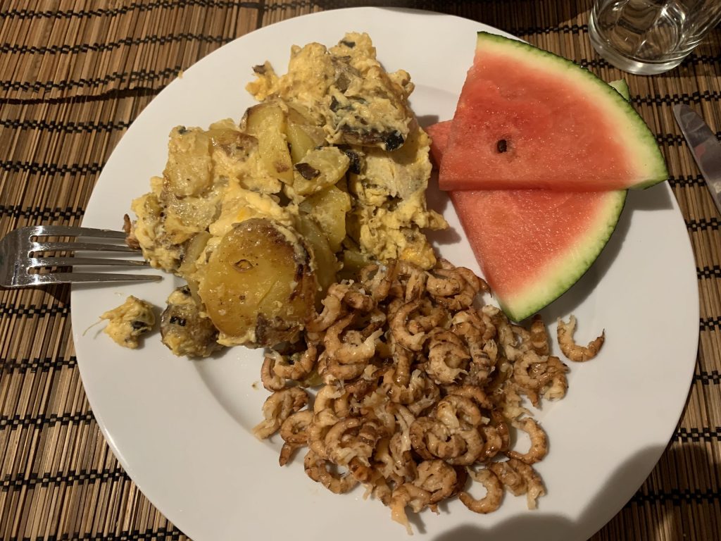 Dann die Dusche. Wenn man Warmwasser haben wollte, musste man brav aufessen, dass die Sonne scheint und mit ein bissl Solar, dann das Wasser warm wurde. Obwohl wir alles dafür getan haben, war das duschen eine Erfrischung. Und wer sich schonmal mit Quellwasser gewaschen hat, weiß wie kalt das Wasser ist ….brrrrrr