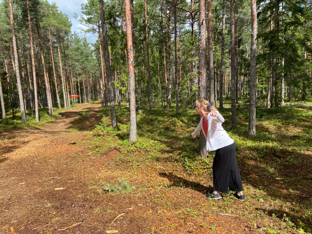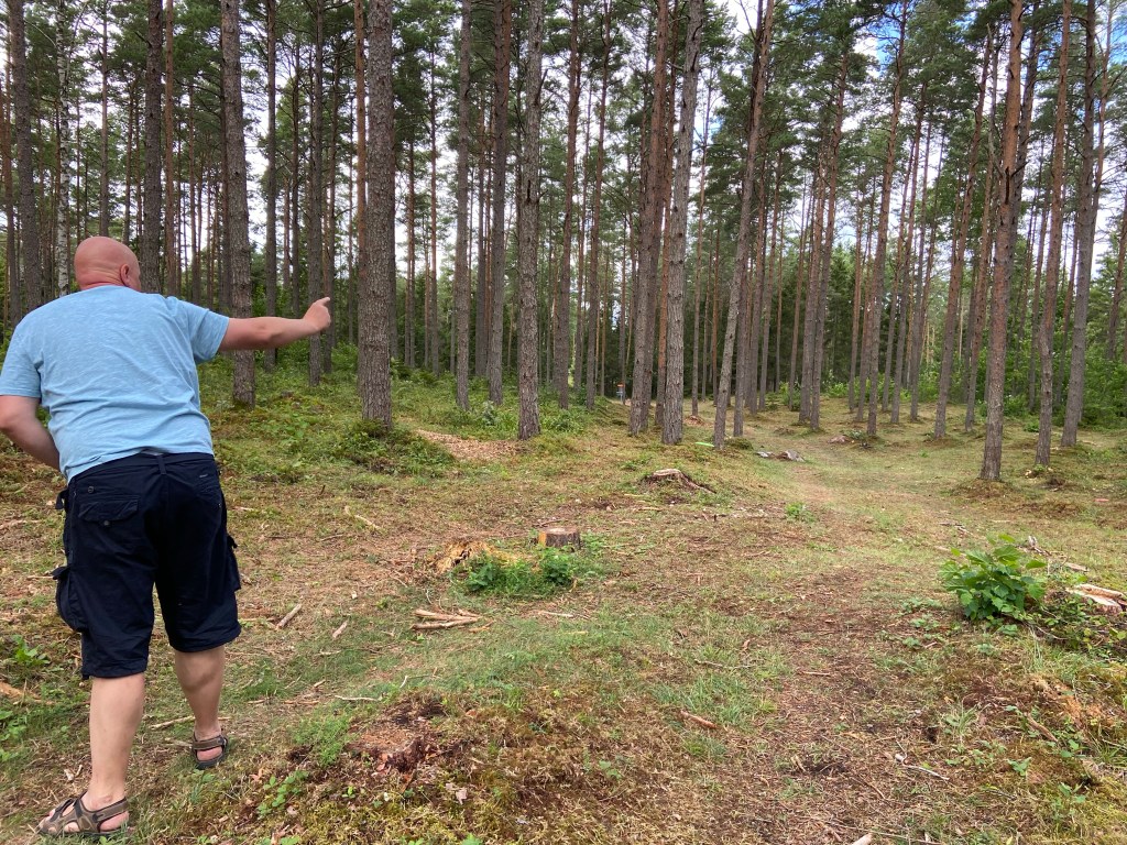 Hier gibt es mitten im Wald eine Anlage für Frisbee- Golf. Das einzige was man benötigt sind die Frisbees 🥏. Jeder braucht eine. Also haben wir uns auf die Suche gemacht. Denny hat noch zwei alte Herren angesprochen. Diese konnten jedoch kein Wort Englisch, malten aber den Weg in den Sand auf. Naja das war dann doch eine Irrfahrt. Aber wir haben im dritten Laden, mehr gibt es hier im Norden der Insel nicht, unsere Frisbees bekommen. Es konnte losgehen.