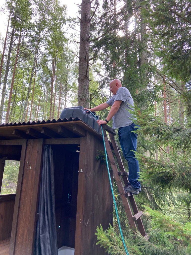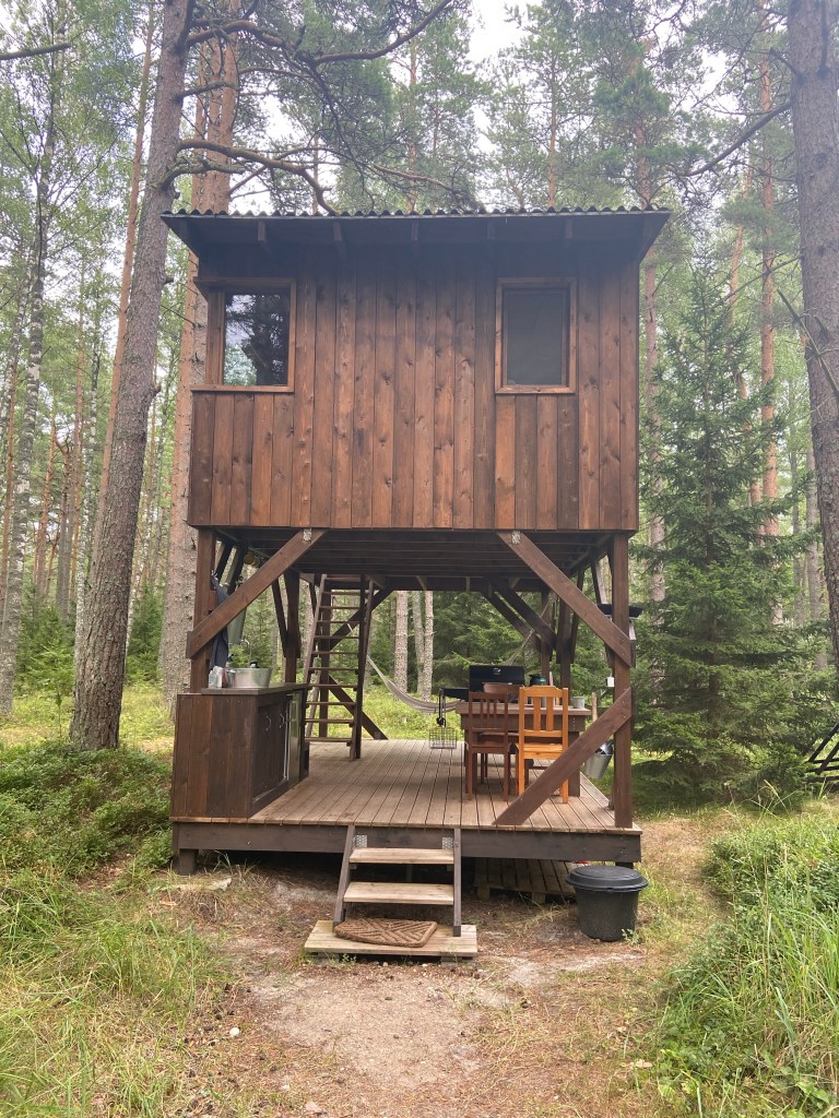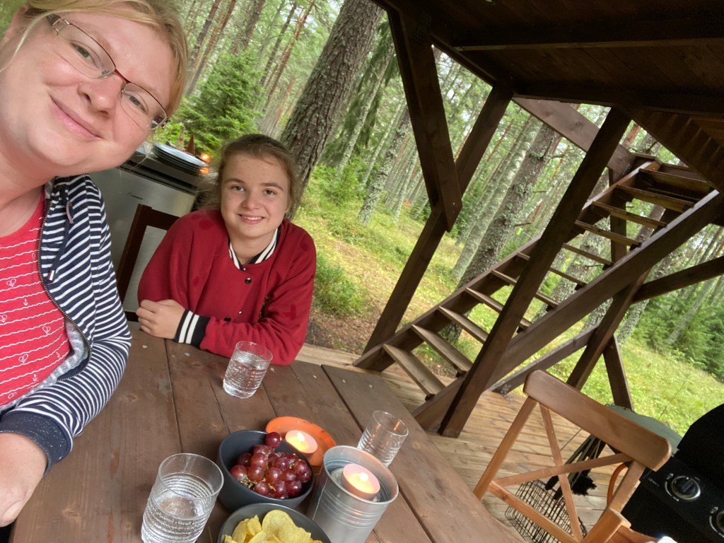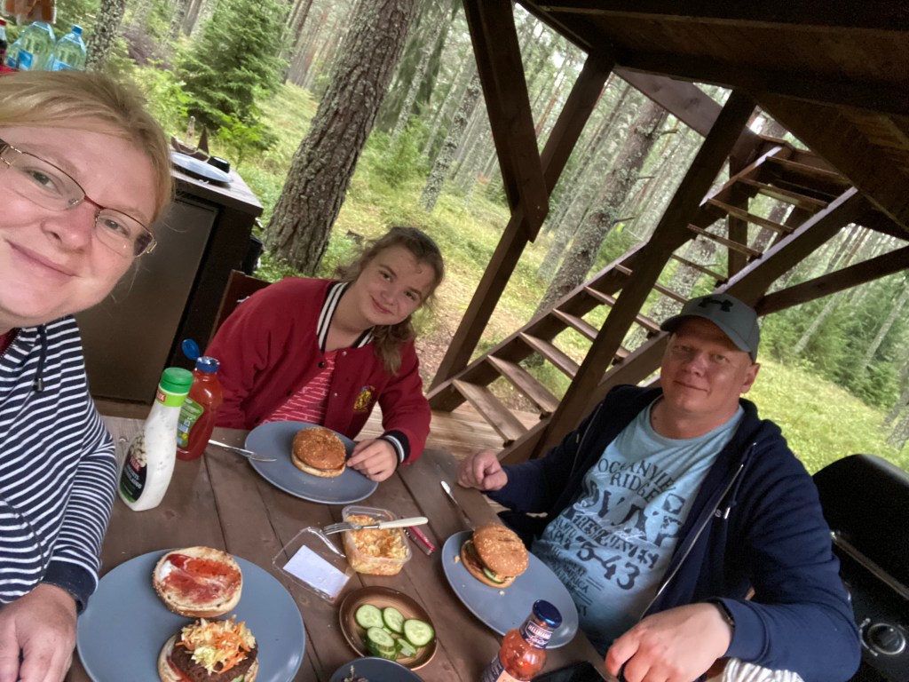 Nach dem Mittagessen waren wir dann mit Sergej verabredet, der uns zu unserer Unterkunft begleitete. Diese liegt direkt im Wald, keine Nachbarn, kein Straßenlärm. Nur wir und der Wald (und die Mücken). Seht selbst 😃