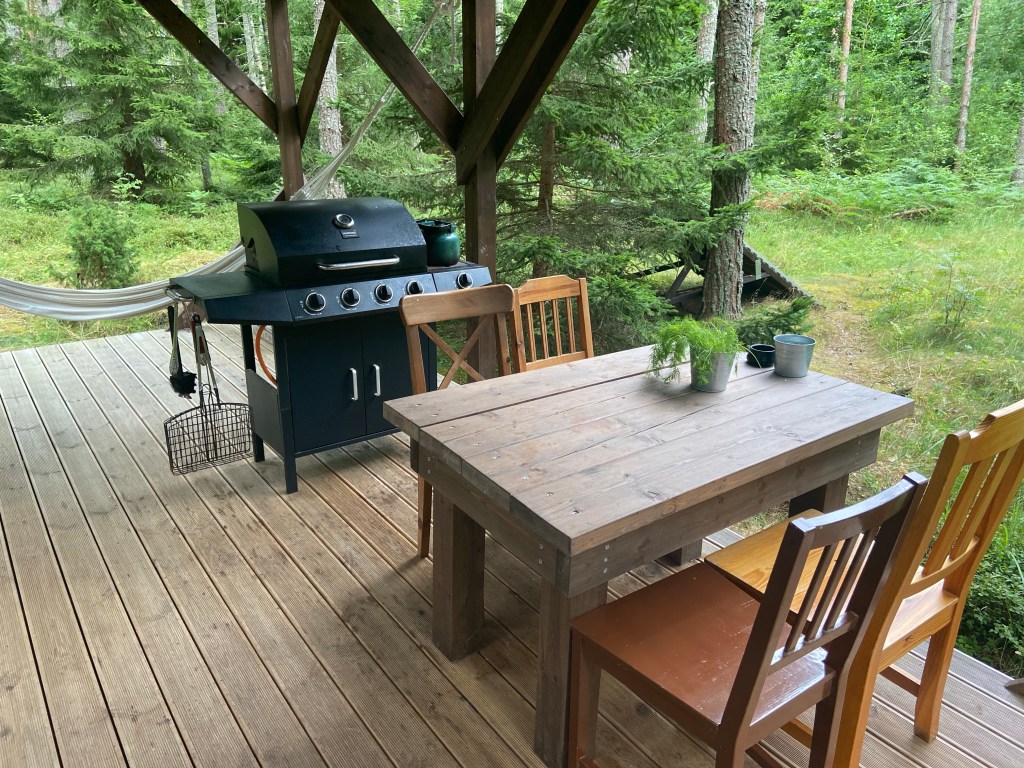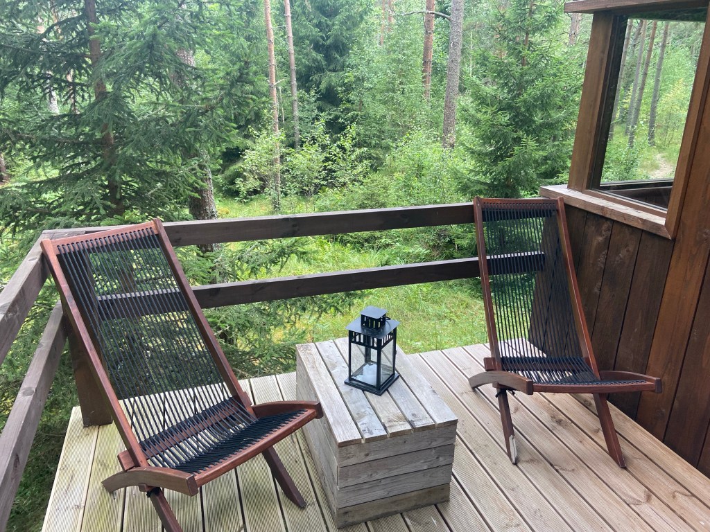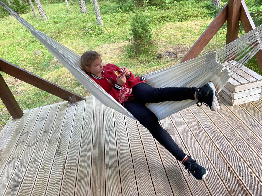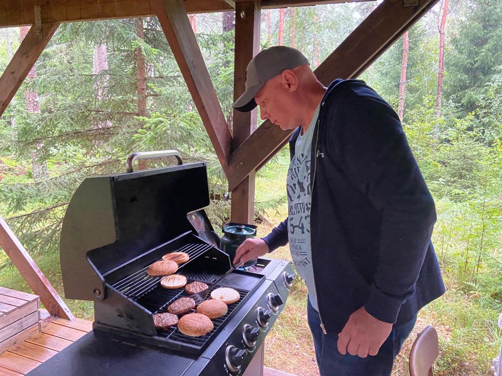 Nach dem Mittagessen waren wir dann mit Sergej verabredet, der uns zu unserer Unterkunft begleitete. Diese liegt direkt im Wald, keine Nachbarn, kein Straßenlärm. Nur wir und der Wald (und die Mücken). Seht selbst 😃