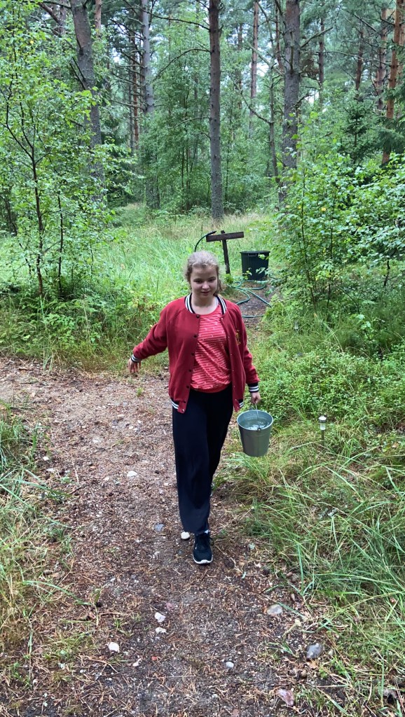 Zum Abwaschen benötigten wir ja auch Wasser, das war natürlich das frische Quellwasser. Den coolen Eimer 🪣 zum holen gab es dafür auch.